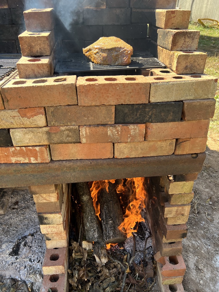 Place on the grill for 20 minutes. Take it off then wrap in aluminum foil. And now for the big secret. Place the wrapped roast in a dutch oven and return to the grill for 45 minutes. Check your roast. If it is not cooked as well as you want, rewrap the roast and place it back in the dutch oven over the fire for 30 more minutes.